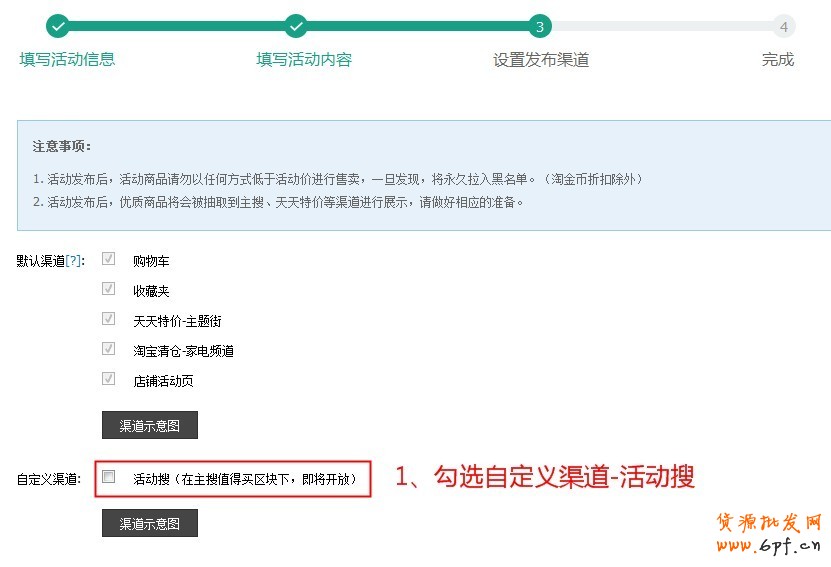 上活動搜步驟:淘寶營銷中心創(chuàng)建活動-選擇自定義渠道-填寫補充信息-發(fā)布上線