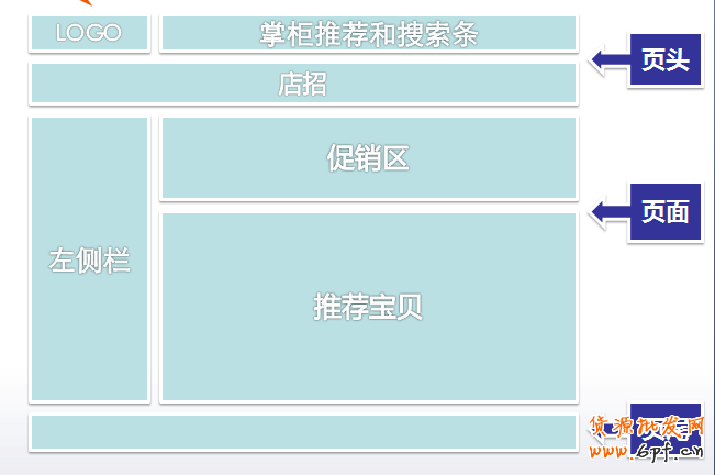 頁(yè)頭;左側(cè)欄;促銷區(qū);推薦寶貝;頁(yè)尾