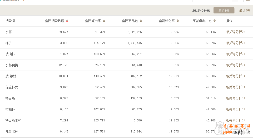 這個基本上能夠看出哪些關鍵字的流量的一些增長狀況,在我們做標題的時候,結合這些數(shù)據(jù)和淘寶指數(shù)里面的數(shù)據(jù),就可以非常輕松的找到我們需要的潛力詞。