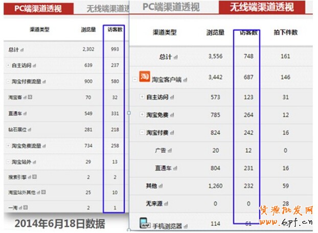 下圖為某店鋪,2014年6月18日的數(shù)據(jù),當(dāng)時(shí)PC與無(wú)線UV的比是1.3:1,銷售比是1.5:1,當(dāng)然直通車也是PC流量高于無(wú)線流量。