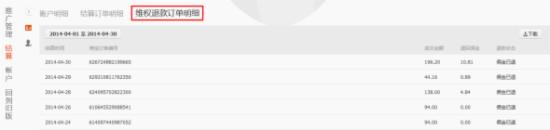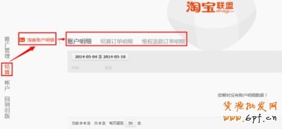 1)進入后臺點擊左側(cè)導(dǎo)航條——結(jié)算,選擇淘客賬戶明細(賬戶明細—結(jié)算訂單明細—維權(quán)退款訂單明細),如下圖所示;