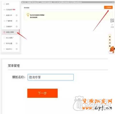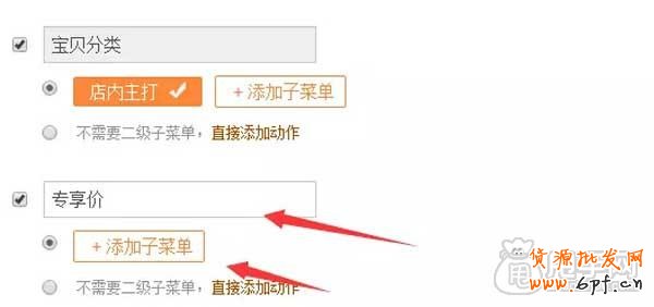 5、下面設置微淘專享的菜單,輸入要展現(xiàn)出來的名稱,點開添加子菜單