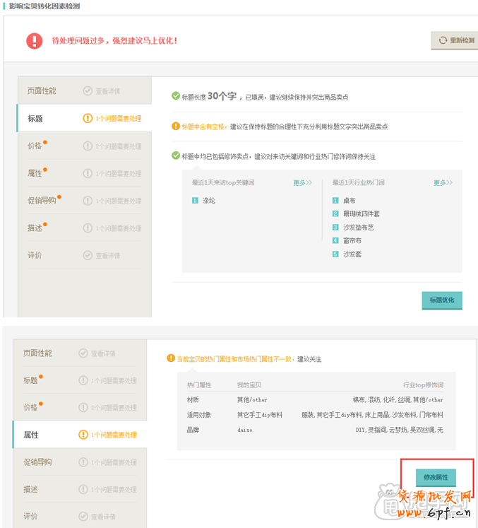 屬性:主要檢測的寶貝的屬性是否與市場熱門屬性相一致。