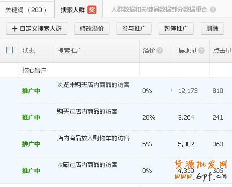 搜索人群這項(xiàng)功能,很多掌柜還不熟悉,下面一塊來認(rèn)識一下吧;搜索人群總的分為三大塊:核心客戶、潛在客戶和自定義人群。我們先從這三個(gè)方面做一下分析。