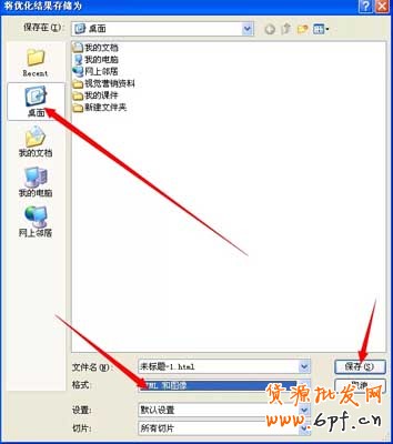 6.點擊存儲,出來一個對話框,存在桌面,格式一定要為HTML和圖像