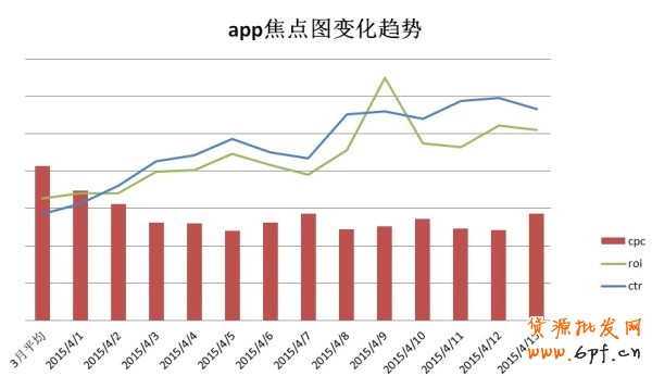 以上是無線焦點(diǎn)圖點(diǎn)擊成本、點(diǎn)擊率和回報率的變化圖,可以看到Ctr:提升100%、Cpc:降低31%、Roi:提升56%.