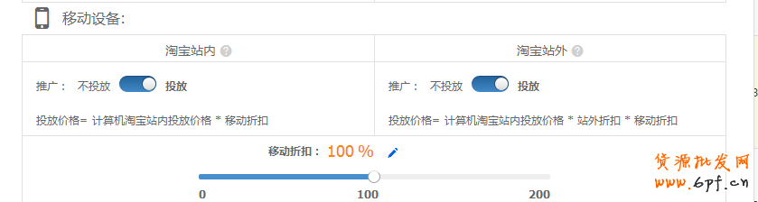 如下圖,移動端的設(shè)置也是根據(jù)轉(zhuǎn)化數(shù)據(jù)來調(diào)整,但是前期一開始測試的話可以在100%-110%測試,后期根據(jù)效果來優(yōu)化。以此案例為主,測試下來的無線端效果并不佳,所以后期我們降低了一些比例測試。