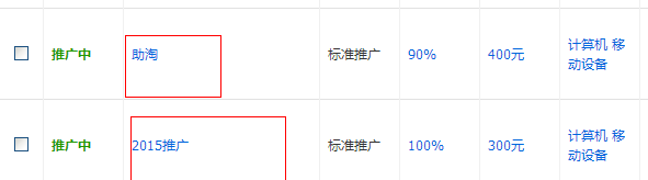 建立不同的計劃,每個計劃都有專門的分配作用,主要進(jìn)行主推款計劃、副推款計劃。根據(jù)不同的賬戶分配不同的計劃,這個賬戶推廣寶貝數(shù)不多,所以主要運用了兩個計劃來推廣。兩個計劃分別推廣不同的寶貝,主推款還是測試款等要根據(jù)自己的實際情況來合理安排。如圖: