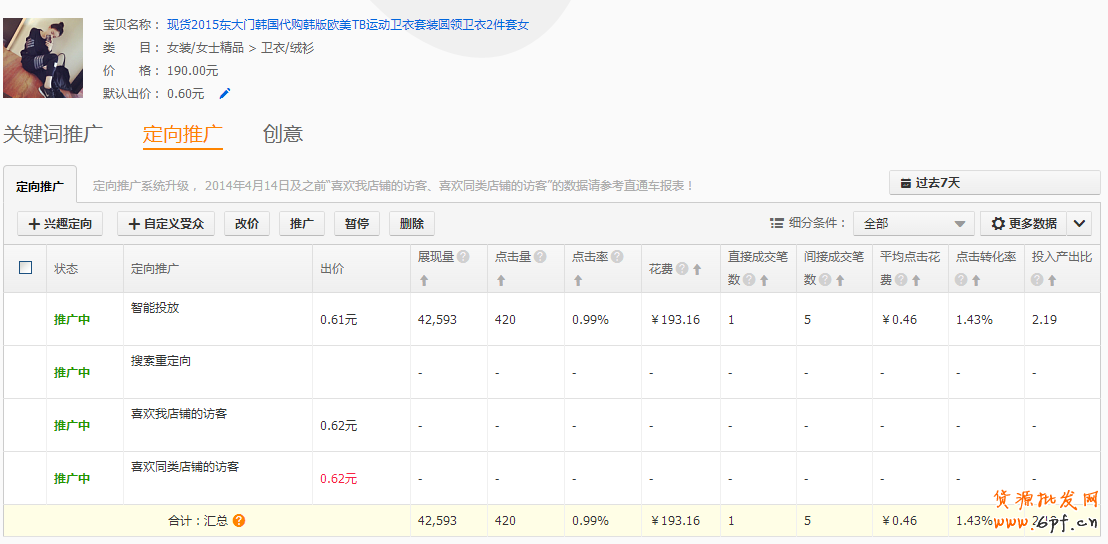 當(dāng)前位置: 貨源批發(fā)網(wǎng) » 網(wǎng)商學(xué)院 » 網(wǎng)店推廣 » 淘寶推廣 » 直通車 » 一個4皇冠店鋪的直通車推廣之道