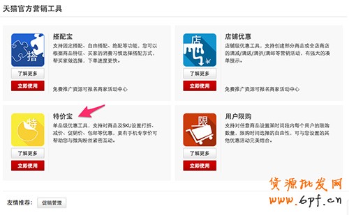 先在進(jìn)入到商家后臺(tái)左側(cè)的【天貓官方營銷工具】選擇【特價(jià)寶】