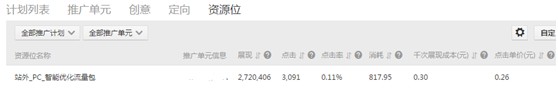 自主選擇資源位的引流成本:0.9元左右一個(gè)點(diǎn)擊