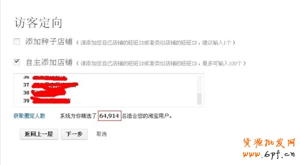 在鉆展投放初期,訪客定向圈定的人數為6萬多,對于淘寶通欄這個位置來說,圈定人數并不少,為了進一步精準人群,筆者在之前店鋪的基礎上進行新一輪的篩選,主要是參考產品價格和風格兩個維度,過濾掉了一些相對不太精準的店鋪,圈定人數縮減到3萬多人,雖然人數減少,但是精準度提高了,轉化也相應提升了上去。