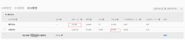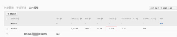 圖1,是無(wú)線端最近半個(gè)月的定向自家效果,可以看到點(diǎn)擊率有5.62%。