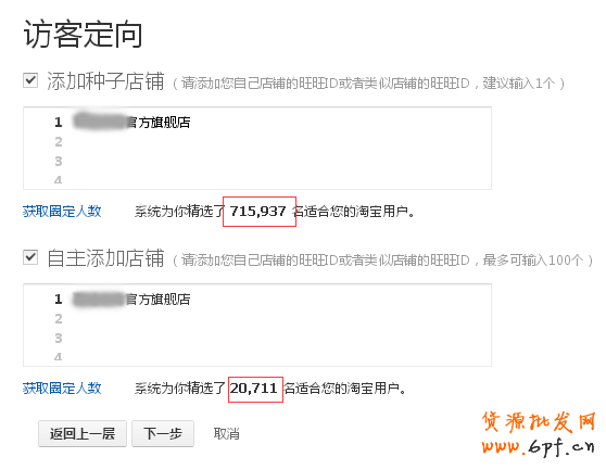訪客定向:這塊分成種子店鋪和自主店鋪。首先來(lái)看這兩者的區(qū)別,同一家店在種子店鋪和自主店鋪里圈定的人數(shù)是相差很大的,看下圖