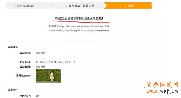 設(shè)置好后點完成,就設(shè)置好了,到下面的界面??梢詫@個活動進行下宣傳推廣,加大活動的效果。