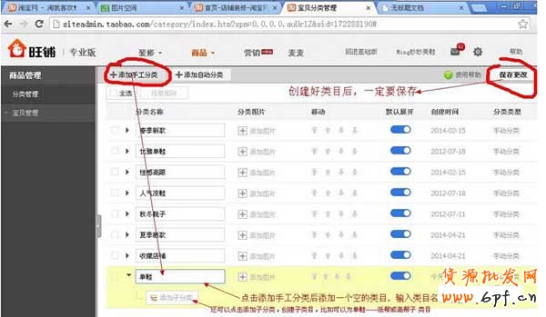 2.點(diǎn)擊“添加手工分類”添加自己想要添加的分類,添加好之后點(diǎn)擊“保存更改”,接著回到裝修頁(yè)面,看看剛才添加的分類是否存在了,然后勾選要展示出來(lái)的分類就可以了。