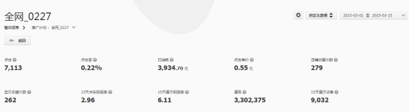 年終:春節(jié)期間考慮到店鋪流量下滑嚴(yán)重和春款上新之后的推廣,所以鉆展是持續(xù)投放的,小預(yù)算主要以引流為目的,但是在投放過程中發(fā)現(xiàn)數(shù)據(jù)也是非常不錯(cuò)的,整體PPC在0.1左右,回報(bào)率在2.6左右。年前預(yù)算相對較小,初四開始逐漸加大預(yù)算,為2月26日的上新做準(zhǔn)備。