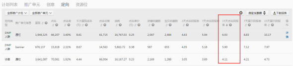 站內(nèi),站外選擇的定向是一樣的,但是在定向的消耗能力上,站內(nèi)訪客定向和DMP定向的消耗基本在1:1,而站外資源位是訪客定向消耗大一些,由此可以看出站外資源位用于拓展店鋪流量和店鋪人群是非常有利的。
