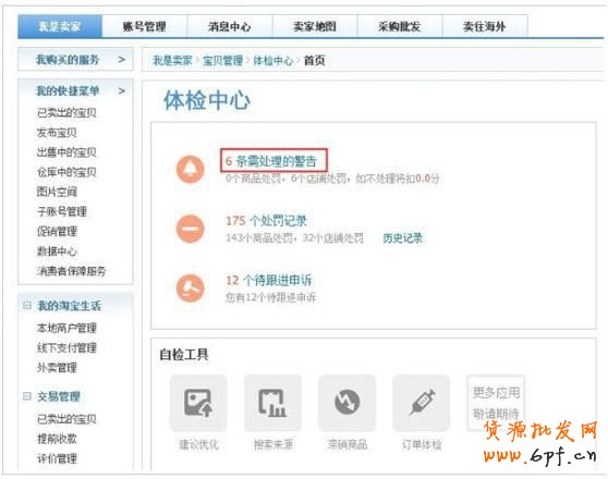 第二步:在頁面的最左側(cè)找到“寶貝管理”,點(diǎn)擊“體檢中心”;