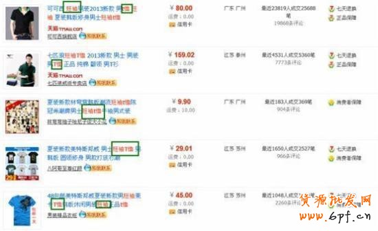 如果搜索的是詞組(我們這里指的是無空格的情況,如果有空格的話,淘寶的搜索引擎會(huì)首先遵從用戶的意愿,它會(huì)認(rèn)為用戶已經(jīng)分好詞了),淘寶會(huì)根據(jù)對以前數(shù)據(jù)的概率分析,自行將詞組分成兩個(gè)(或者多個(gè))單詞,然后無序匹配。這時(shí)候只要滿足單字完全匹配規(guī)則即可,沒必要滿足純粹顯示的原則。比如我們搜索“短袖T恤”: