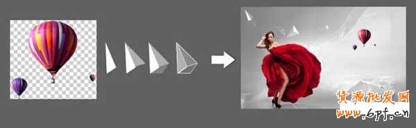 六、如下圖,打開氣球素材,然后把氣球素材進(jìn)行一個鏡頭模糊的濾鏡,讓整張圖更富有沖擊感。
