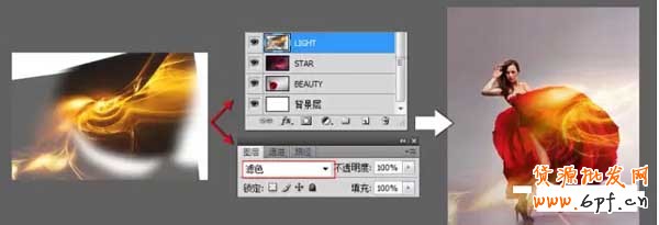 三、繼續(xù)導(dǎo)入光(light)素材拖動到星星素材上方,然后把混合模式更改為濾色。