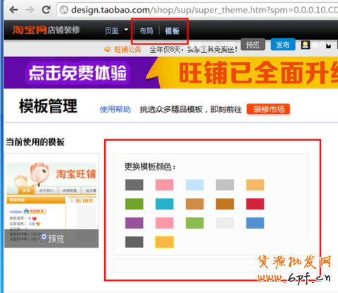 5.淘寶雖然有一些免費的模板,但是淘寶裝修模板就跟QQ空間是一樣的,一些漂亮一點的模板是需要錢的,但是如果你有PS功底的話,也可以自己設(shè)置模板的,你可以在網(wǎng)店裝修的頁面上方選擇布局和模板設(shè)置,設(shè)計一個有個性有特色的淘寶網(wǎng)店。(如下圖)