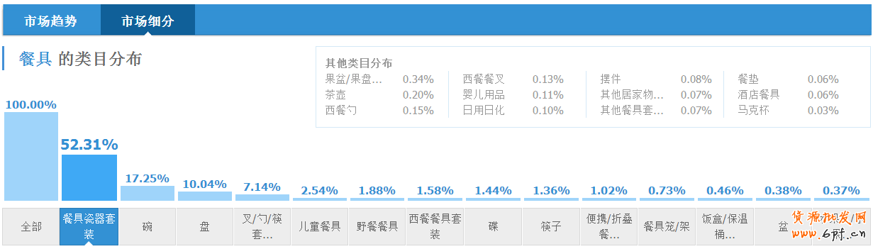 但是除了景德鎮(zhèn)陶瓷的發(fā)源地,唐山,骨瓷的出產(chǎn)地,圍繞在這周圍的城市的人網(wǎng)購(gòu)餐具其他城市的人不需要嗎?不,他們需要,他們的需求甚至比景德鎮(zhèn)和唐山這些地的人群需求大很多,但是他們不了解這個(gè)行業(yè)。在首頁(yè)的類目列表里面甚至找不到餐具這個(gè)類目。所以餐具類目不太適合追求小而美,需要自己去創(chuàng)造大而美。