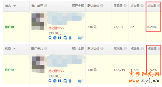 這是同一款寶貝在不同計劃中的點擊率的表現(xiàn),可以看到差別是很大的,所以我們在推廣的過程中,如果遇到這種情況,可以再另外單建一個計劃去推廣投放,這樣對于寶貝的點擊率就會有不同的效果。