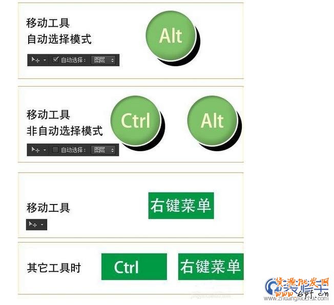 還有一種方法就是在圖層上右鍵單擊選擇,如果在其他工具是按Ctrl鍵右鍵單擊選擇。