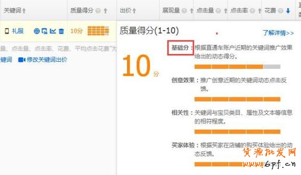 同個關(guān)鍵詞在不同的寶貝里面有著不同的質(zhì)量得分,可以看到10分的關(guān)鍵詞帶有著手機標(biāo)志。關(guān)鍵詞質(zhì)量分反映寶貝數(shù)據(jù)的高低,同時也反映一個寶貝是否具備有潛力,我們都知道如果寶貝整體培養(yǎng)的數(shù)據(jù)很好,它所新添的關(guān)鍵詞質(zhì)量分就會高,這就跟關(guān)鍵詞質(zhì)量得分內(nèi)的“基礎(chǔ)分”和“創(chuàng)意分”有關(guān),那么如何去提升影響到我們質(zhì)量得分呢?最重要的數(shù)據(jù)是什么?