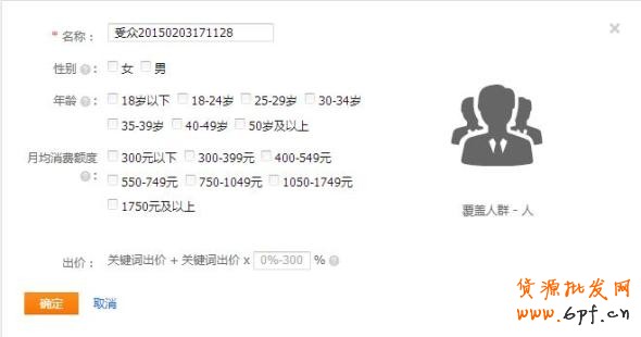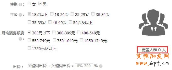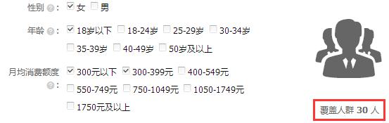 b.【自定義搜索人群】主要由三個維度組成:分別是“性別“、”年齡”、“月均消費幅度”。對于如何勾選這些選項進行投放,可以從“行業(yè)”找大方向,其次根據咱們店鋪寶貝自身的特點進行投放測試。