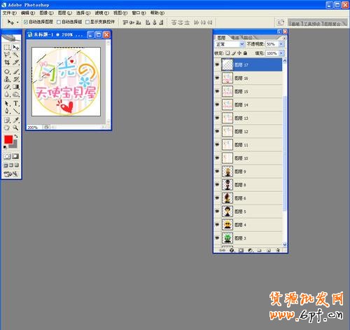 19、復(fù)制當(dāng)前幀為第17幀,將顯示圖層17,同樣設(shè)置動(dòng)畫延遲的時(shí)間為0.1秒