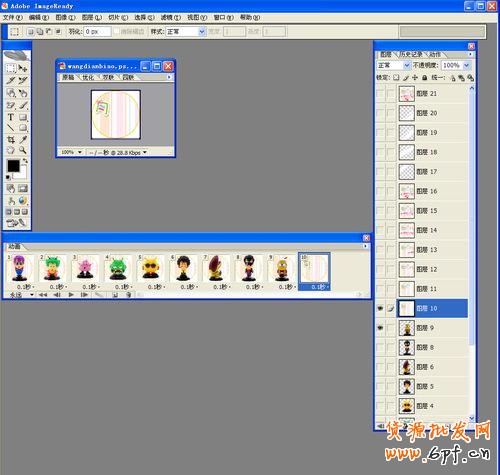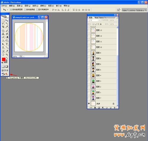 12、點(diǎn)擊工具箱中最下方的按鈕,可以切換至Imageready軟件中來繼制作動(dòng)畫