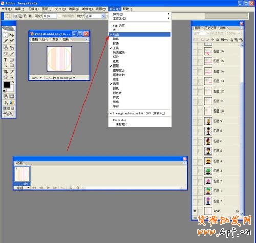 13、在窗口菜單調(diào)出“動(dòng)畫”面板配合圖層的顯示和隱藏功能