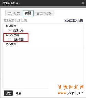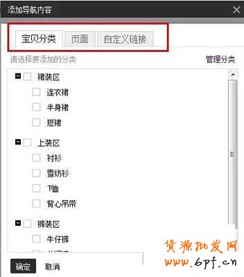 添加導(dǎo)航內(nèi)容如下圖所示:寶貝分類、頁面、自定義鏈接。