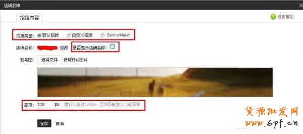 默認(rèn)招牌:選了默認(rèn)招牌要按照自帶的樣式設(shè)置,店鋪名稱是否顯示、背景圖、高度,位置固定不能修改,適用于新手。