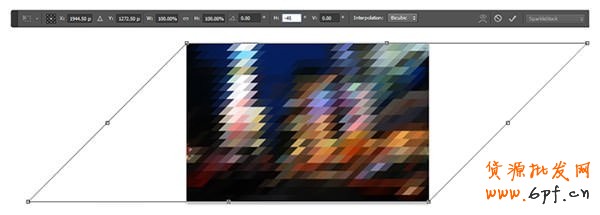 同樣使用自由變換工具讓圖像水平傾斜45度;