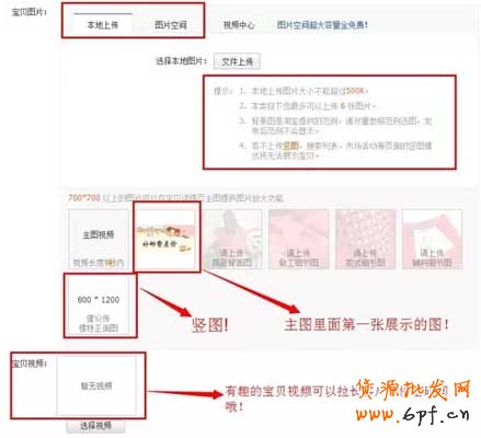 打開寶貝的詳情頁編輯頁面,我們可以從本地上傳圖片或圖片空間。圖片的數(shù)量最多是5張主圖展現(xiàn)和1張豎圖。