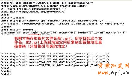 4.把我們剛才導(dǎo)出的圖片文件上傳到淘寶空間后,復(fù)制出圖片的鏈接地址,然后直接替換我們剛才找到的那段圖片調(diào)用地址。