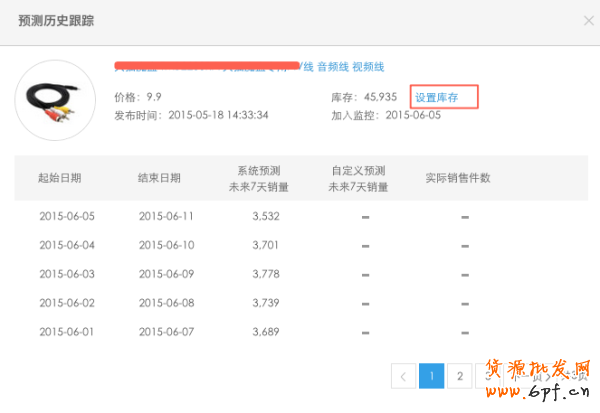 對于監(jiān)控中的商品可以設置自定義預測規(guī)則以及查看歷史跟蹤數(shù)據(jù)。