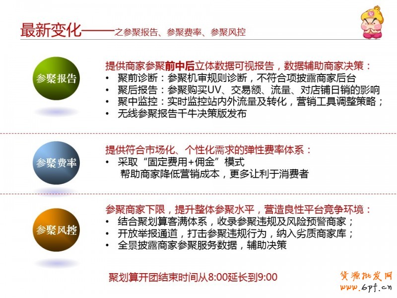 疲勞期取消:每月6次的參聚疲勞期已經(jīng)取消,將根據(jù)參聚市場(chǎng)表現(xiàn)決定商家參聚頻率,不設(shè)上限。