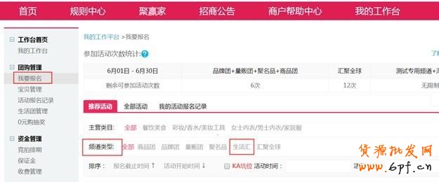 2、點擊“我要報名”,選擇頻道類型“生活匯”,出現(xiàn)所有生活匯可報名的活動。