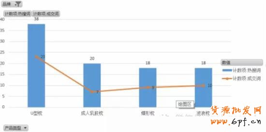 A品牌主要搜索關(guān)鍵詞詞分布在U型枕這個產(chǎn)品上。38個熱搜詞,23個成交詞。