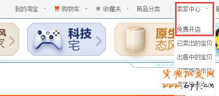 3、今天的重點(diǎn)!回到淘寶官網(wǎng),在首頁(yè)右上方的賣家中心——免費(fèi)開店。