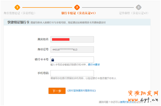 4.填寫完支付寶和身份信息后,點(diǎn)擊確定后,還需要用戶填寫銀行卡卡號并確定同意協(xié)議,實(shí)名認(rèn)證就此完成。