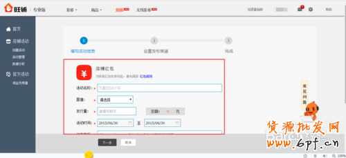 作為小賣家要經常做些吸引客戶的活動才能增加自己店鋪的銷量,大批量的做付費的活動消耗又太大,怎么做一些免費的活動呢?這里給大家演示一下,怎么給自己的店鋪建立紅包活動。