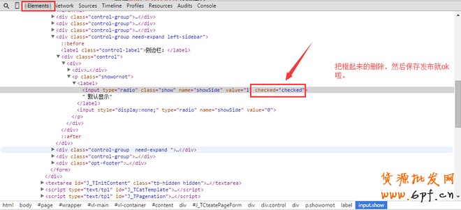 最后,側(cè)邊欄的默認(rèn)顯示是強(qiáng)制開(kāi)啟的,這個(gè)時(shí)候把你的鼠標(biāo)移到默認(rèn)顯示的圓圈圈上,右擊,然后審查元素,找到“checked="checked"”把它直接刪除保存發(fā)布,然后950px的詳情頁(yè)就制作好了。