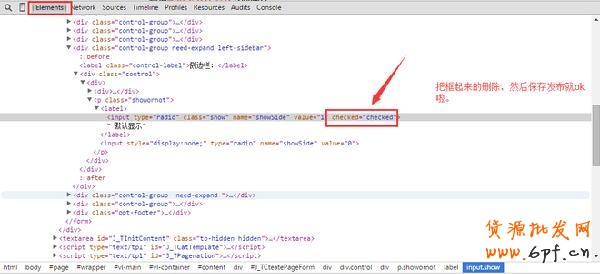 三、來到頁面屬性,側(cè)邊詳情頁是強制開啟的,要怎樣做才能隱藏它呢?右擊選擇圓點處,將會看見“審查元素”,按Crtl+F查找“checked=checked”,然后把這段代碼刪除保存即可,接著按照950px布局設(shè)計店鋪裝修就行了。