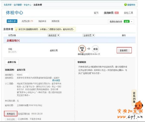 第二步:找到虛假交易訂單,點(diǎn)擊“查看原因”,就會(huì)看到淘寶處罰你的詳情原因,若對(duì)這些處罰有什么疑問或者異議的,可以在線咨詢淘寶客服。